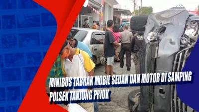 Minibus Tabrak Mobil Sedan dan Motor di Samping Polsek Tanjung Priok