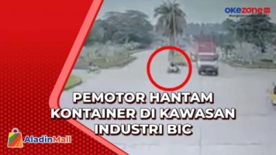 Ngeri, Detik-Detik Pengendara Motor Tabrak Kontainer
