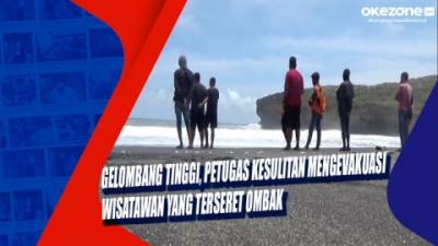 Gelombang Tinggi, Petugas Kesulitan Mengevakuasi Wisatawan yang Terseret Ombak