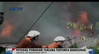 Petugas Pemadam Tertimpa Reruntuhan Bangunan