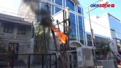 Dua Tiang Listrik yang Dipenuhi Kabel Semrawut di Jakbar Terbakar