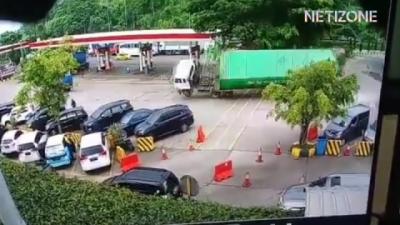 Rekaman CCTV Truk Kontainer Terguling Timpa 7 Kendaraan di Rest Area Tol Cipularang