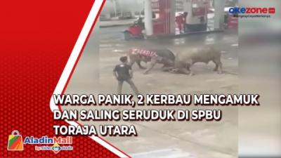 Warga Panik, 2 Kerbau Mengamuk dan Saling Seruduk di SPBU Toraja Utara
