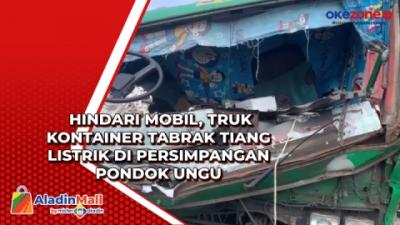 Hindari Mobil, Truk Kontainer Tabrak Tiang Listrik di Persimpangan Pondok Ungu