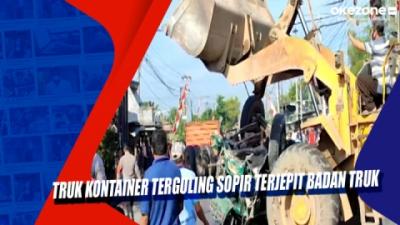 Truk Kontainer Terguling Sopir Terjepit Badan Truk