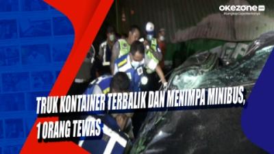 Truk Kontainer Terbalik dan Menimpa Minibus, 1 Orang Tewas