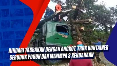 Hindari Tabrakan dengan Angkot, Truk Kontainer Seruduk Pohon dan Menimpa 3 Kendaraan
