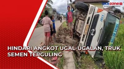 Hindari Angkot Ugal-Ugalan, Truk Semen Terguling