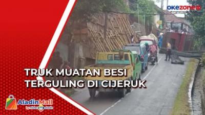 Gagal Nanjak, Truk Muatan Besi Terguling di Palasari Cijeruk