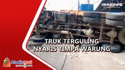 Truk Miring dan Terguling di Bekasi, Nyaris Timpa Warung