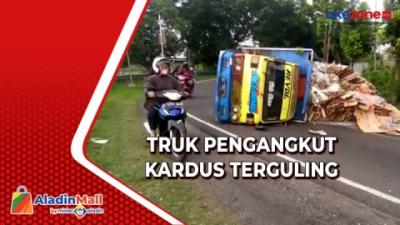 Truk Pengangkut Kardus Terguling di Jombang, Muatan Tumpah dan Menutup Jalan