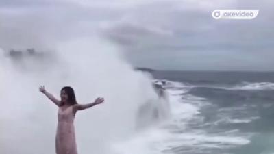 Detik-Detik Turis Wanita Dihantam Ombak Besar saat Foto-Foto di Bali