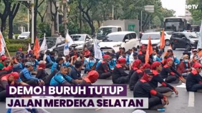 Buruh Demo Tutup Jalan Merdeka Selatan, Nyaris Baku Hantam dengan Ojol