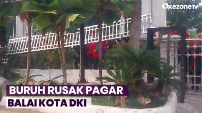 Massa Buruh Rusak Pagar Balai Kota DKI Jakarta saat Demonstrasi