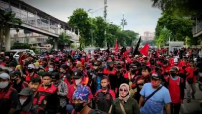 Unjuk Rasa Menolak Omnibus Law Cipta Kerja di Kawasan Patung Kuda