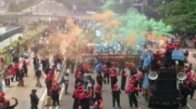 Jelang Malam, Demonstran Bakar Ban di Patung Kuda
