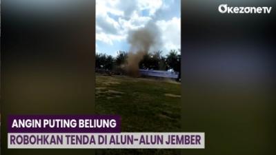 Angin Puting Beliung Robohkan Tenda di Alun-Alun Jember