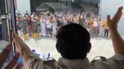 Momen Menhan Prabowo Menyapa WNI dari Wuhan di Natuna