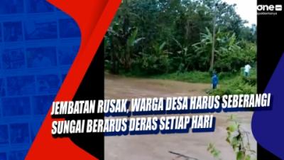 Jembatan Rusak, Warga Desa Harus Seberangi Sungai Berarus Deras Setiap Hari