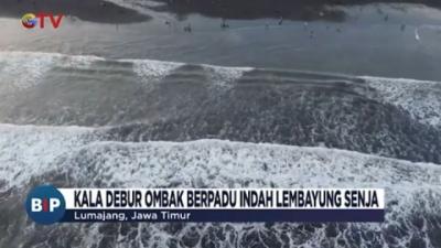 Kala Debut Ombak Berpadu Indah Lembayung Senja di Lumajang