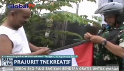 Prajurit TNI Ajak Warga Pasang Bendera Merah Putih di Kalimantan Tengah
