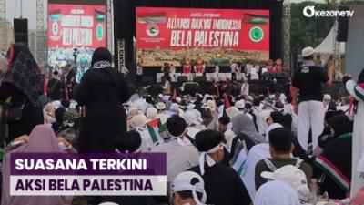 Suasana Terkini Massa Bela Palestina di Monas, Duduk Bersila Lantunkan Selawat Asyghil