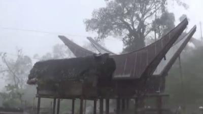 Angin Puting Beliung Disertai Hujan Deras Hantam Puluhan Rumah Adat di Toraja