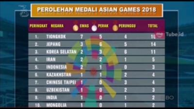 Klasemen Sementara Perolehan Medali Asian Games 2018