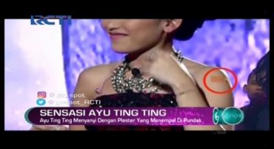 Ayu Ting Ting Nyanyi dengan Plester Nempel di Pundak