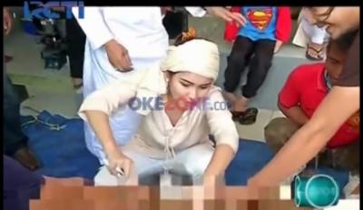 Ayu Ting-Ting Ikut Sembelih Hewan Kurban