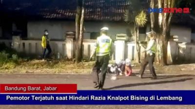 Pemotor Terjatuh saat Hindari Razia Knalpot Bising di Lembang