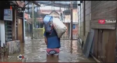 Diterjang Banjir, Warga Bantaran Sungai Ciliwung Ngungsi Bawa Harta Benda