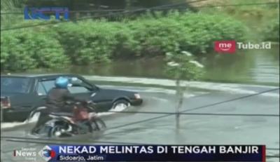 Jalan Raya Porong Banjir, Kendaraan yang Nekat Menerobos Mogok