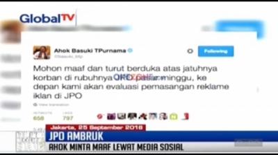 JPO Ambruk, Ahok Minta Maaf Lewat Media Sosial