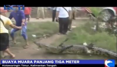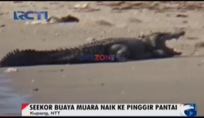 Seekor Buaya Muara Naik ke Pinggir Pantai