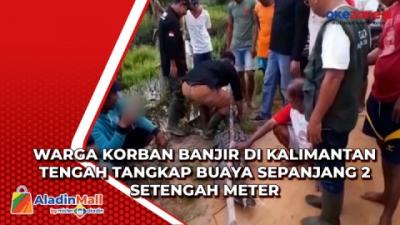 Warga Korban Banjir di Kalimantan Tengah Tangkap Buaya Sepanjang 2 Setengah Meter