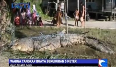 Warga Aceh Singkil Tangkap Buaya Berukuran 5 Meter
