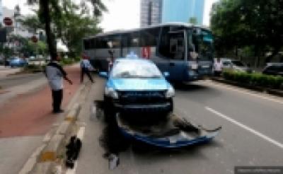 Ban Bus TransJakarta Meledak, Hantam Taksi