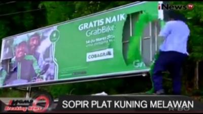 Spanduk GrabBike Diturunkan dan Dibakar Sopir Taksi