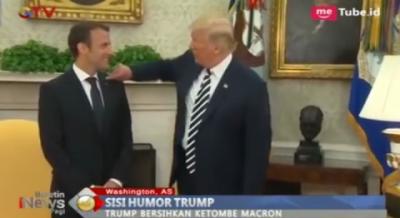 Momen Lucu Donald Trump Bersihkan Ketombe Presiden Prancis