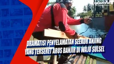 Dramatis! Penyelamatan Seekor Anjing yang Terseret Arus Banjir di Wajo Sulsel