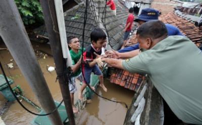 Proses Evakuasi Korban Banjir Kampung Pulo