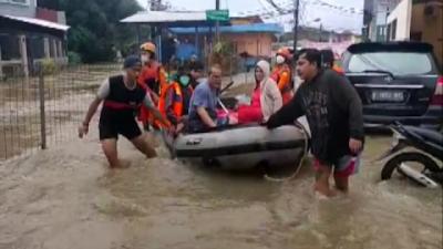 Evakuasi Lansia dan Anak-Anak di Komplek Dosen IKIP, Bekasi