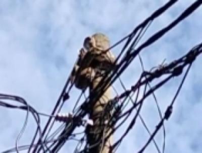 Evakuasi Ular Sanca dari Tiang Listrik