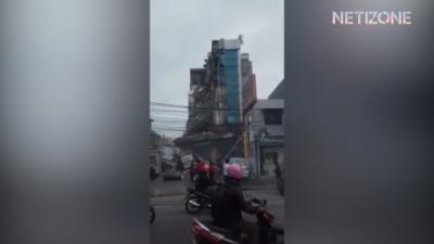 Gedung Roboh Timpa 3 Mobil Mewah