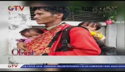 Bapak Ini Gendong Kedua Anaknya Tanpa Alas Kaki, Kemana Tujuannya