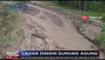 Lahar Dingin Gunung Agung Mulai Gerus Arus Sungai