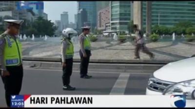 Polisi Hentikan Kendaraan untuk Mengheningkan Cipta