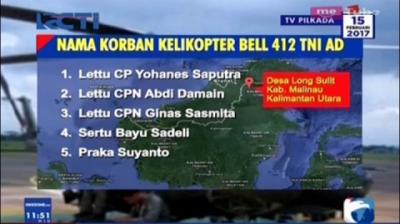 Daftar Korban Helikopter Bell 412 TNI AD
