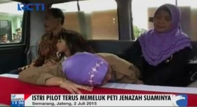 Istri Pilot Terus Peluk Peti Jenazah Suaminya